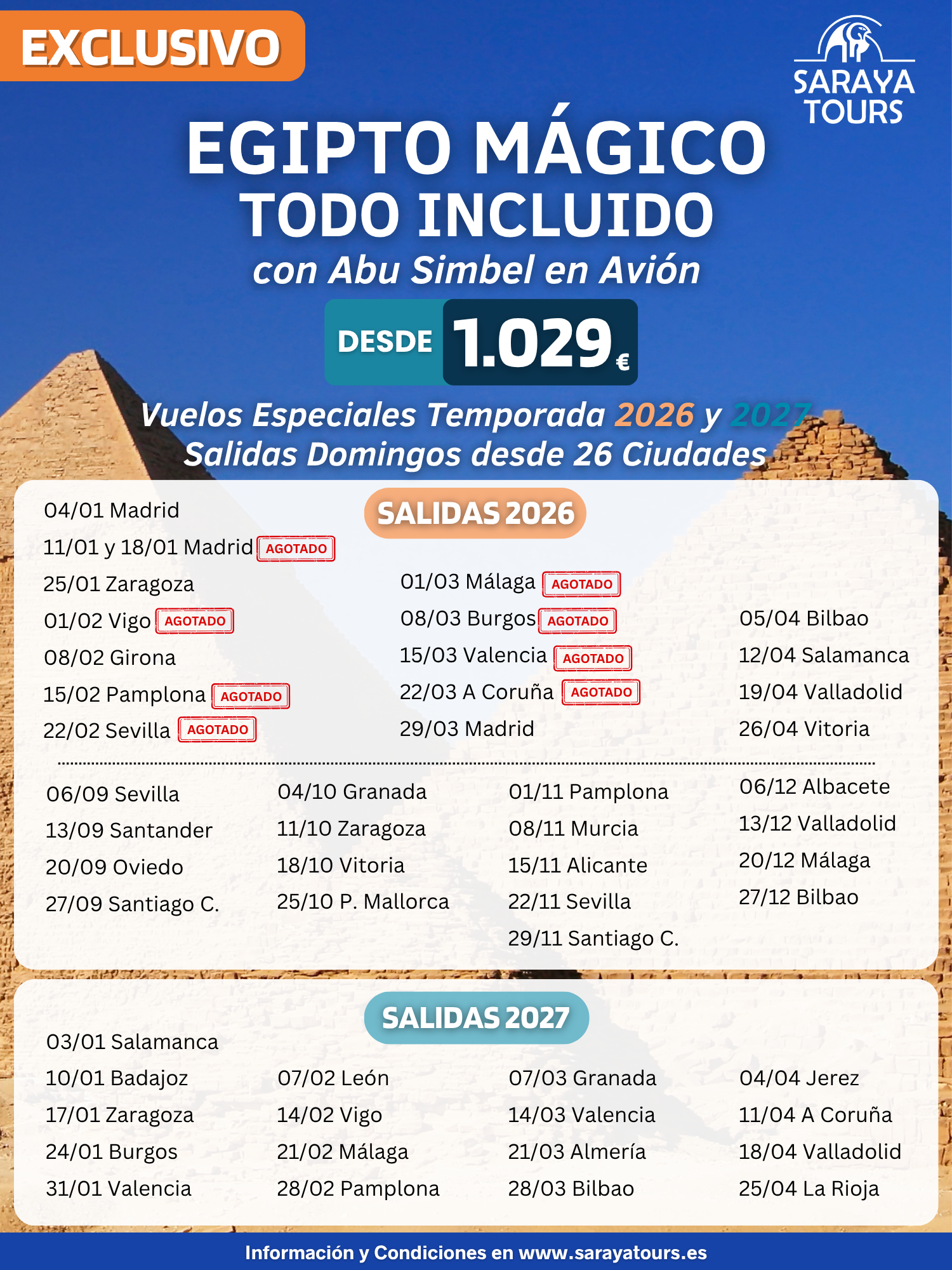 Especial Egipto Mágico Todo Incluido con Abu Simbel en Avión dsde 1.029€. Salidas domingos. Salidas 2026-2027.
