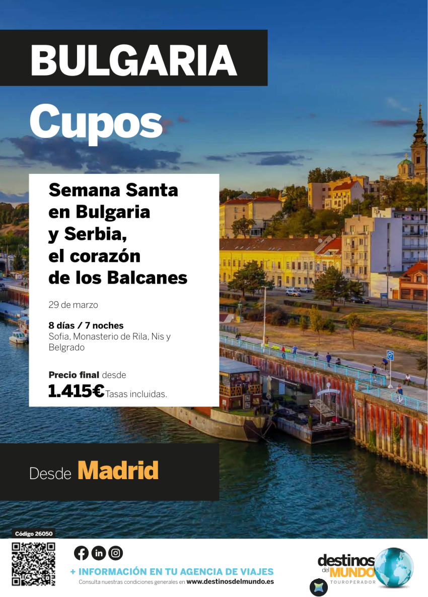 🇧🇬 🇷🇸🤩SEMANA SANTA en Bulgaria y Serbia 8 días / 7 noches salida: marzo: 29 origen: Madrid desde 1.415€🤩